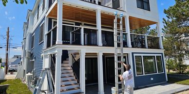 Exterior: Areas to be painted are either power washed or hand washed to remove dirt and mildew.