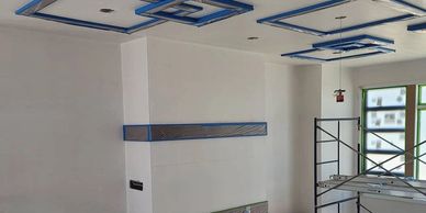 Interior: Your furniture and décor are placed in the center of the room, covered with new plastic, and all flooring is protected with drop cloths.